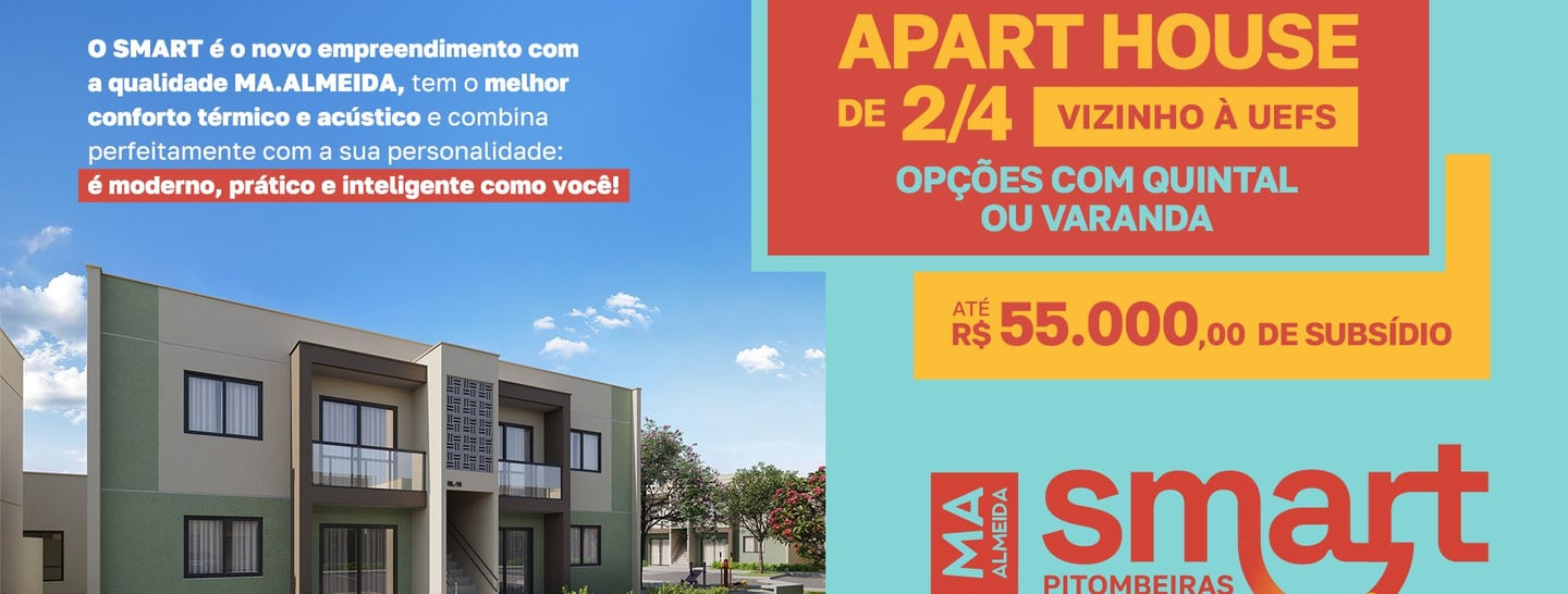 O SMART PITOMBEIRAS é o novo empreendimento com a qualidade MA Almeida, tem o melhor conforto térmico e acústico e combina perfeitamente com a sua personalidade: é moderno, prático e inteligente como você! Pessoas inteligentes fazem boas escolhas. Vem ser SMART!